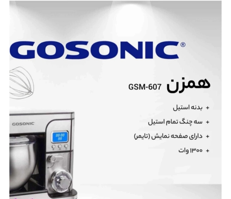 با این همزن ، هر روز طعم تازه ای خلق کن همزن گوسونیک مدل GSM607 جنس کاسه : استیل ظرفیت کاسه : 7لیتر جنس پره: استیل تعداد پرههای همزن : 3 عدد محصول : ترکیه سایر ویژگیها: دارای سری همزن، سری خمیرزن، سری خامهزن جنس بدنه : استیل